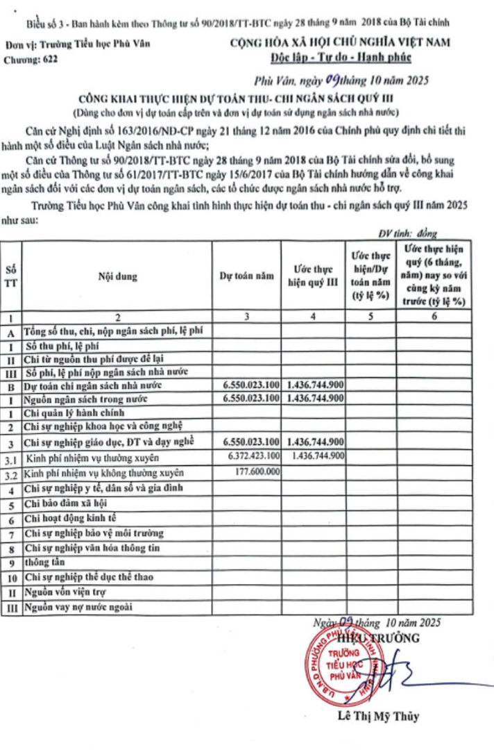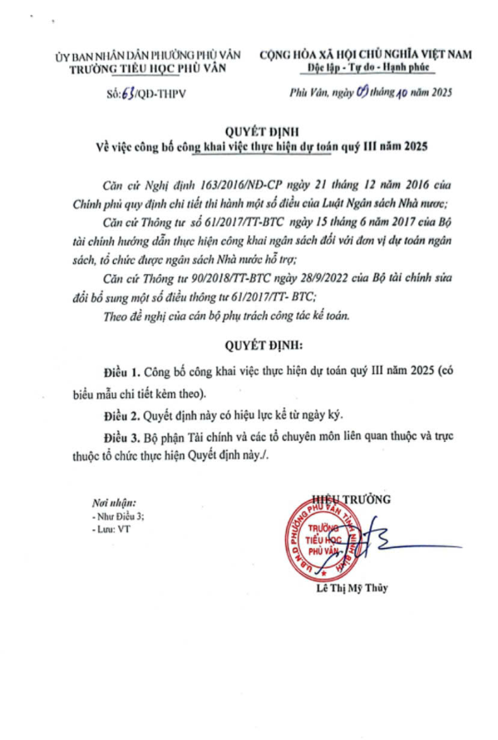 Quyết định về việc công bố công khai việc thực dự toán quý III năm 2025