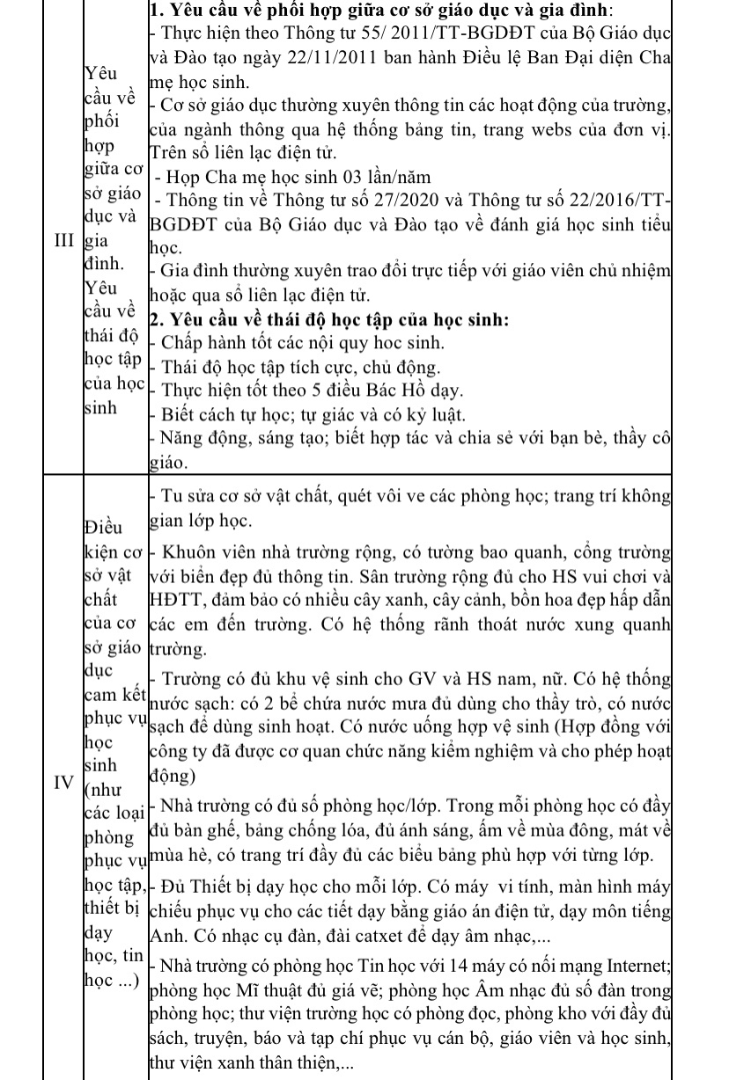 Thông báo Cam kết chất lượng giáo dục của trường Tiểu học năm học 2022 – 2023