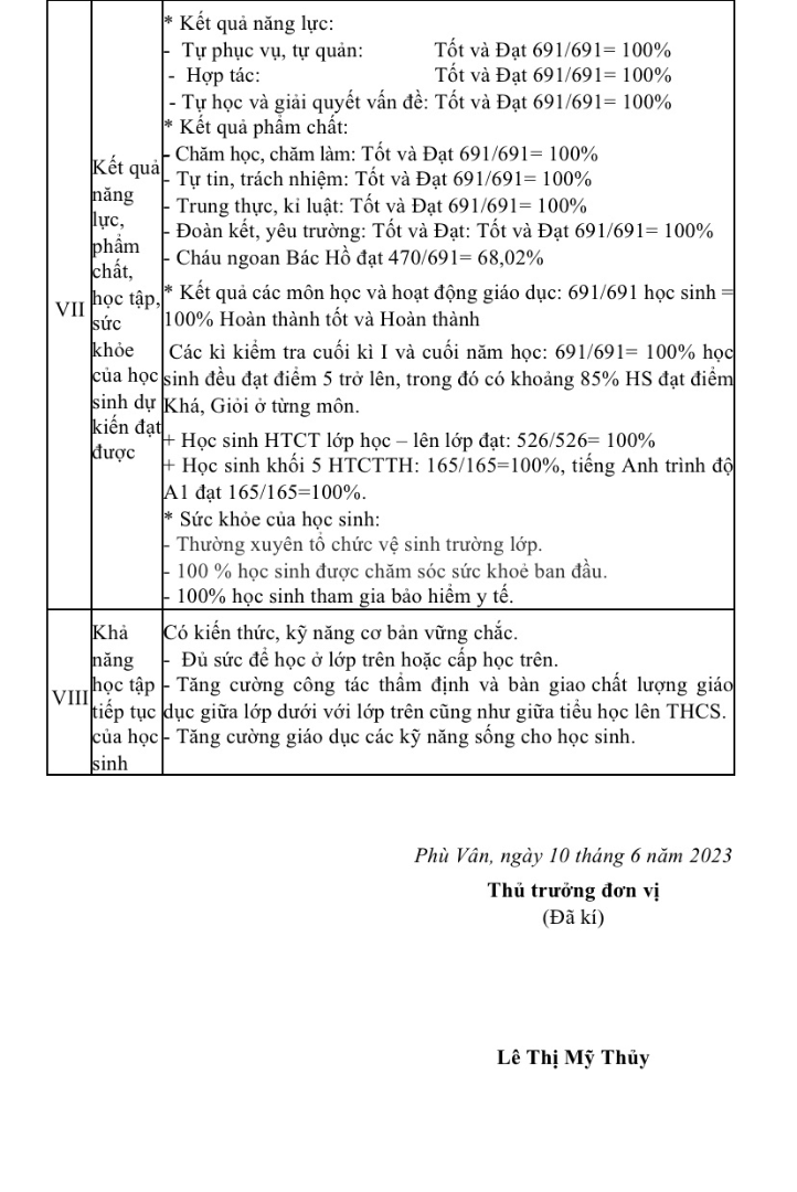 KẾ HOẠCH TUYỂN SINH NĂM HỌC 2023-2024 – TRƯỜNG TIỂU HỌC PHÙ VÂN